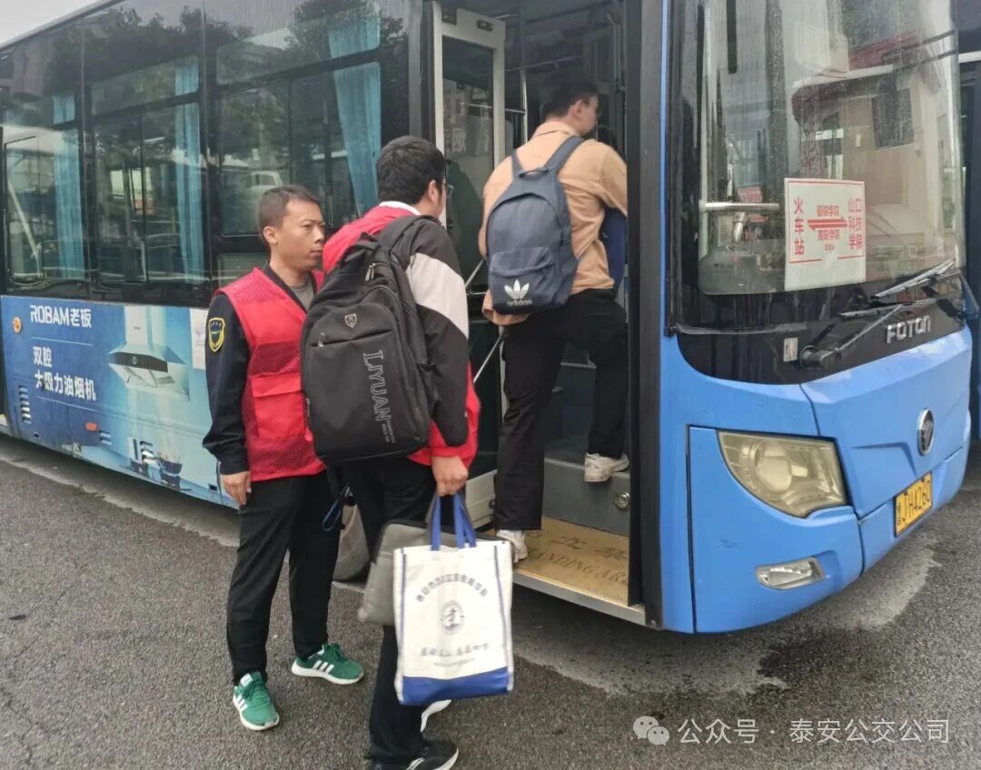 針對泰城東部高校節(jié)假日前后“集中放假、集中返校”的出行規(guī)律,根據(jù)以往經(jīng)驗掌握返校學(xué)生客流量、高峰時段等需求信息。第三分公司提前部署,科學(xué)調(diào)配運力,安排好駕駛員、公交志愿者,以及車輛儲備、實時調(diào)度工作。在泰山火車站公交樞紐站的直通車服務(wù)點,醒目的“火車站—山東服裝學(xué)院—泰山職業(yè)學(xué)院—泰山科技學(xué)院”線路標識牌擺放在車前,讓剛下火車的學(xué)子們一眼就能找到乘車點。公交志愿者們主動上前,一邊引導(dǎo)學(xué)生有序排隊候車,一邊協(xié)助將行李箱規(guī)范擺放在車廂內(nèi)。“放假回家時坐直通車到泰山火車站,現(xiàn)在返校又能從泰山火車站直達校門口,不用拎著大包小包轉(zhuǎn)車換乘,太省心了!”來自泰山科技學(xué)院的一名學(xué)生笑著說道,話語里滿是對直通車服務(wù)的贊許。
