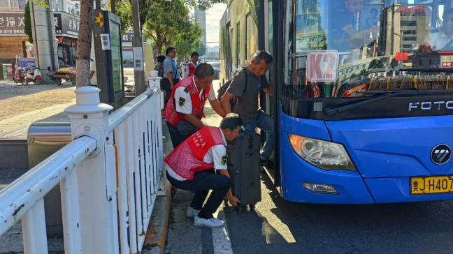 節(jié)日期間,在泰城的各大公交站點,公交志愿者也是每天早早就位開展志愿服務(wù)活動。他們?yōu)槭忻裼慰吞峁┙煌ㄗ稍兎?wù),維持乘車秩序,做好衛(wèi)生維護(hù),讓市民游客在中秋假期享受到滿意出行的服務(wù)。第五分公司線路安全員、公交志愿者劉洋介紹,每到節(jié)假日他經(jīng)常是很多天都見不到自己的家人,早晨4點就要起床趕到場站值班,此時妻子和孩子還在睡夢中,晚上等到最后一班車收車歸隊后與大家下班回家,家人也早已入睡。他說,能讓每位來泰城爬山的游客開開心心登山,高高興興回家,一切都很值得。