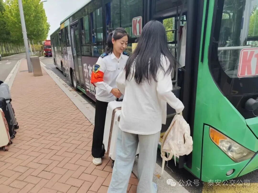當天,倪金華駕駛的1路車剛抵達泰山科技學(xué)院站,便看到站臺上擠滿了學(xué)生。“師傅,等一下!”一名男生拖著兩個大行李箱,氣喘吁吁地跑來。她立刻拉好手剎等候,還順手幫男生將行李箱搬到車廂后部的空位上。“謝謝您,師傅!”男生笑著道謝。那天下午,每當車輛運行至泰山科技學(xué)院終點站,她都會看著學(xué)生們有序上車,并幫他們擺放好行李。有個女生上車時說:“師傅,您真好,我之前坐過您的車,您總是耐心等乘客上車。”聽著這話,倪金華心里暖暖的,覺得所有付出都格外值得。