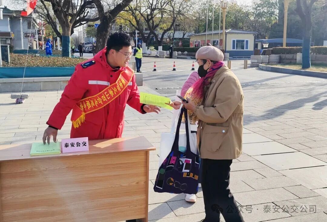為貫徹道路交通安全綜合治理要求,切實(shí)提升市民交通安全意識(shí)與文明出行素養(yǎng),12月2日上午,泰安公交在岱廟文化廣場(chǎng)積極參與泰安市道路交通安全綜合治理委員會(huì)組織開(kāi)展的以“文明交通 禮行天下”為主題的“全國(guó)交通安全日”集中宣傳活動(dòng)。